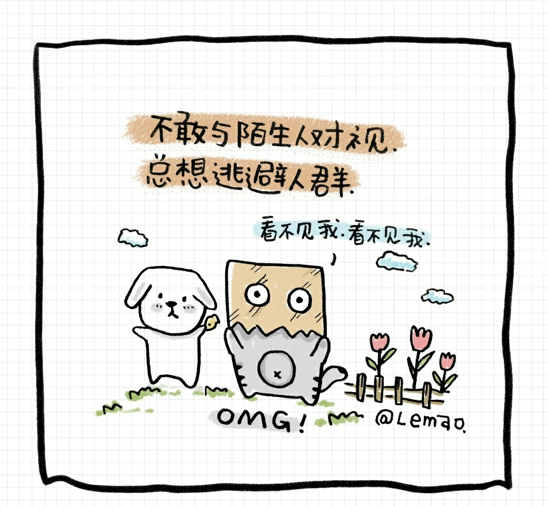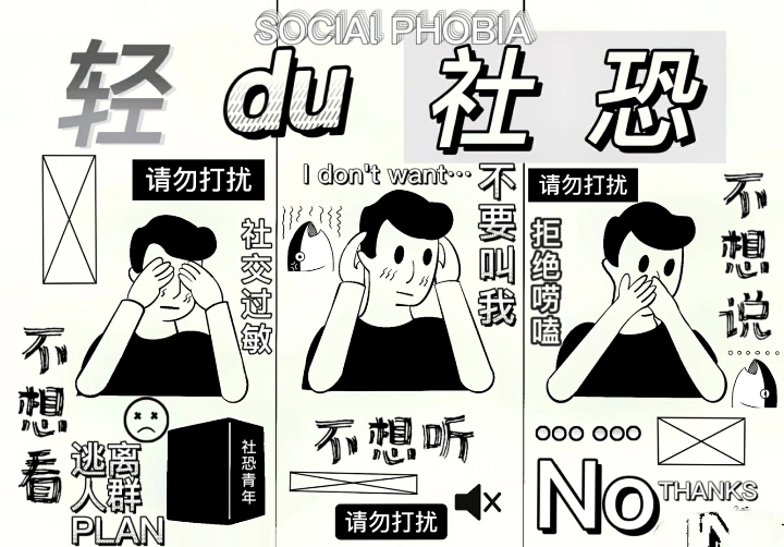 能发信息,就不用语音:害怕成为别人注意的焦点:与人交流紧张,脸红,害羞,结巴:路遇熟人,宁避之而不愿打个招呼:被cue到自我介绍时,只想立马消失。患有社交恐惧的人对社交或表演情境感到恐惧,他们害怕别人观察、害怕丢脸。