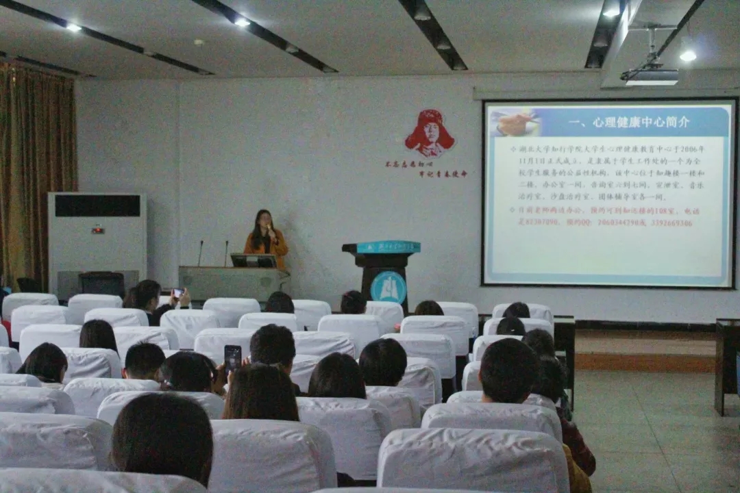2019年3月13日下午15:50至16:50,大学生心理健康中心的刘玥老师与段雪薇老师在报告厅302主持召开了关于湖北大学知行学院心理委员培训的第一次培训,本次培训主要是对心理委员职能的概述,说明心理委员的任务等,参会人员为全院大一各班心理委员,会议进行顺利。