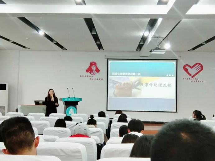 本次讲座刘玥老师讲述了大学生常见的心理困扰及应对办法,以及心理委员应具备的基本素质。心理委员作为同学和老师之间的交流纽带起着必不可少的重要作用,培训是为了更好的在全校范围内展开辅导工作,使得同学们都能有更良好的心态面对生活。