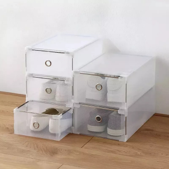 鞋架放鞋容易落灰发霉,透明鞋盒就完美