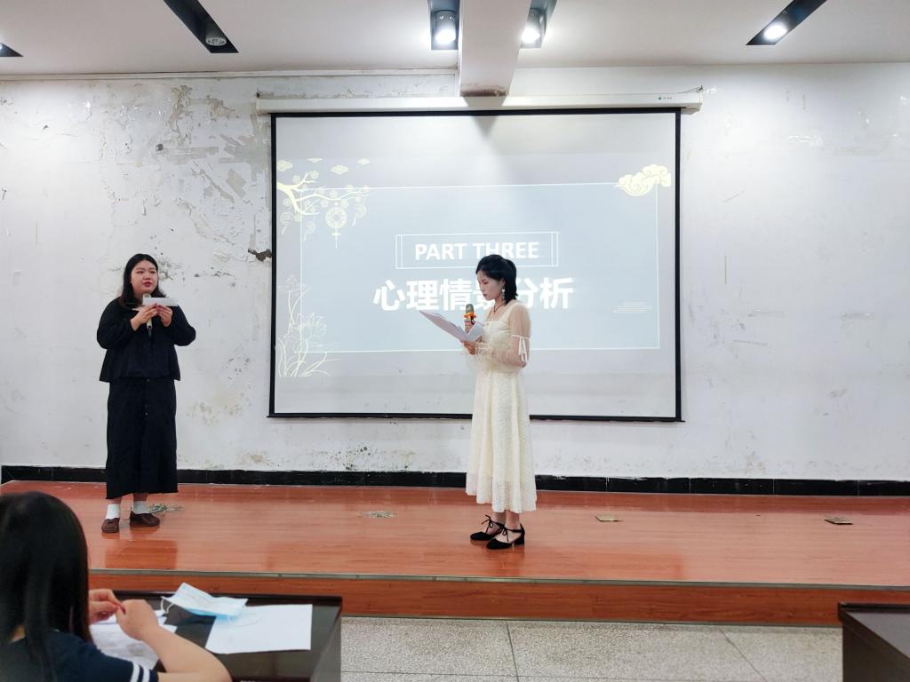 本次心理委员风采大赛分为三个环节:第一个环节,参赛选手需要进行才艺展示或者心理主题演讲,由评委进行现场评分,一共晋级6人。第二个环节是心理知识问答,参赛选手需上台随机抽取3个心理健康相关题目进行回答,每题答对得5分或10分、答错或不答不得分,按得分排名,本轮晋级4人。此环节旨在检验参赛心理委员对心理知识储备与心理专业知识素养。第三环节也是最后一轮的角逐——心理情景案例分析,每位选手根据自己抽选出的心理情景案例进行分析,并给出相应的解决方案,最后由评委打分评选出冠、亚、季军。本环节考察心理委员们的临场反应能力、语言组织能力以及知识运用能力。