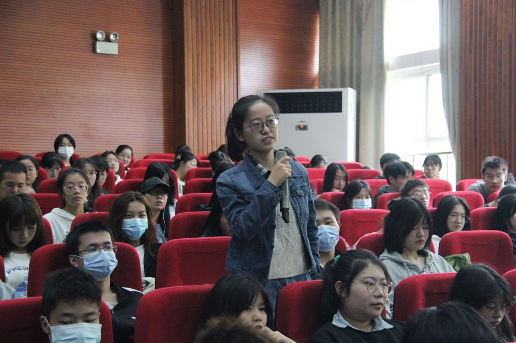 讲座开始,张老师与同学们做了一个互动小游戏,让同学们用手势表达自己的幸福程度,不同的手势代表了不同的生活态度,也让同学们初步认识了自己目前的心理状态。随后,张老师提问了在场同学,聊了聊他们眼中的心理学,并由此介绍了什么是心理学以及心理学的各个类别。为了帮助同学们理解,张老师通过书籍、影片、和各个实例详细讲解了心理学的内容,并表示正常人也需要掌握一定的心理学知识,心理学应该被普及化。在新生大学生活适应性问题上,张老师列出了大学生常见的心理问题,分析了学生进入大学后的学习和生活特点,并给出了相应的心理学建议。