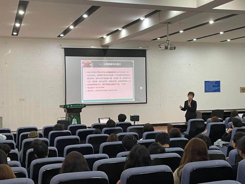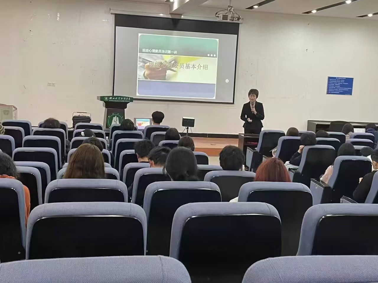 为了能够让学生重视到潜在的心理危机,提高学生的心理素质,树立健康的心理意识,普及心理健康知识,获得更多的心理健康知识,提高班级心理委员工作积极性和有效性,使其积极对待生活、学习中出现的问题,学会在班级中开展心理健康教育活动,并引导同学寻求专业老师的帮助,提高心理委员整体素质和工作能力,更好的为班级同学服务。大学生心理健康教育中心于2024年3月21日下午14点30分在知远楼106报告厅举办2023级班级心理委员培训第一讲活动。本次活动邀请易凤霞担当授课老师,在校2023级班级心理委员参加了此次活动。