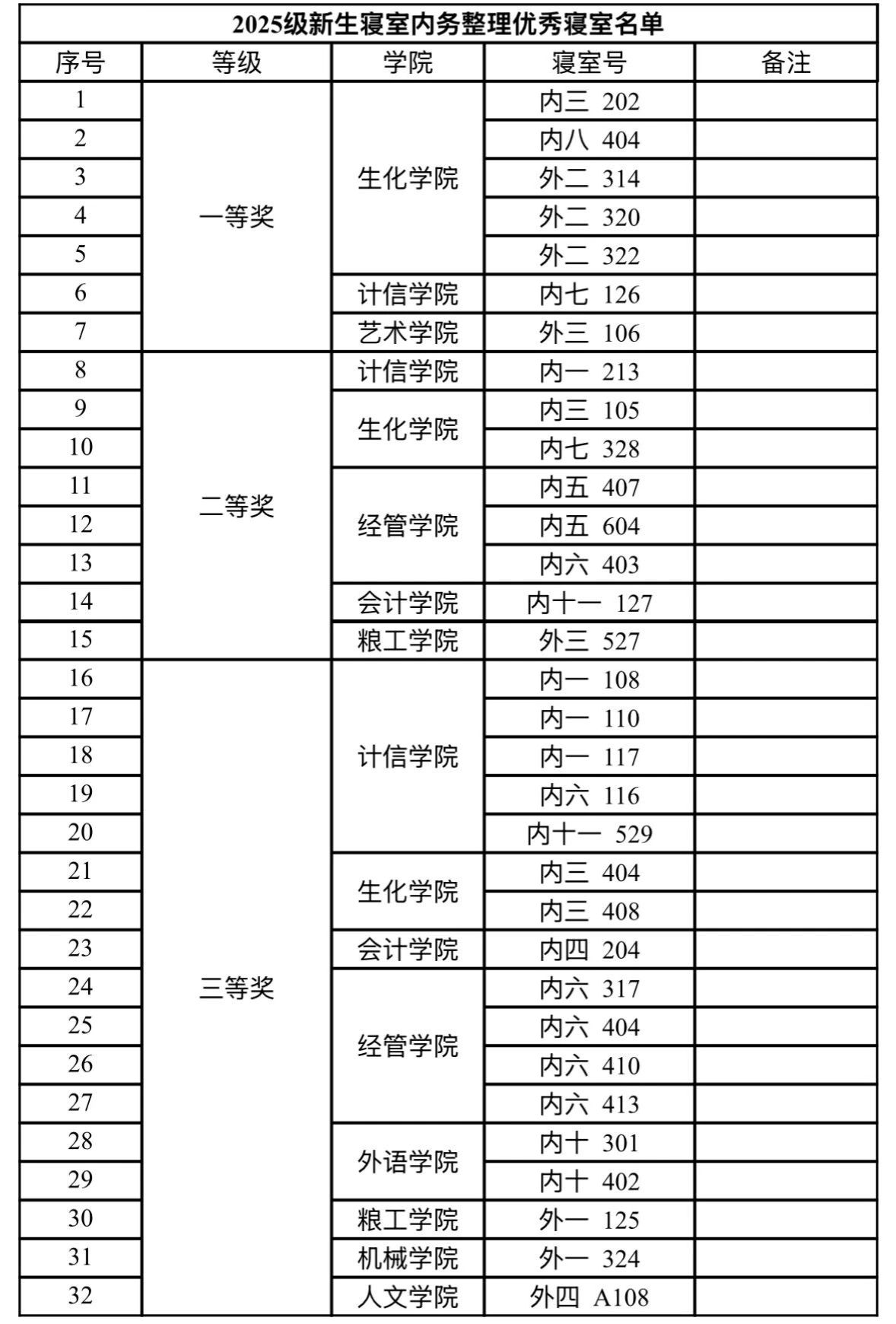 评委团秉持公平、公正、公开的原则,从多个维度进行严格评审与反复研讨。最终,经过层层筛选与综合考量,本次比赛的获奖名单正式揭晓。现将优秀寝室公布如下: