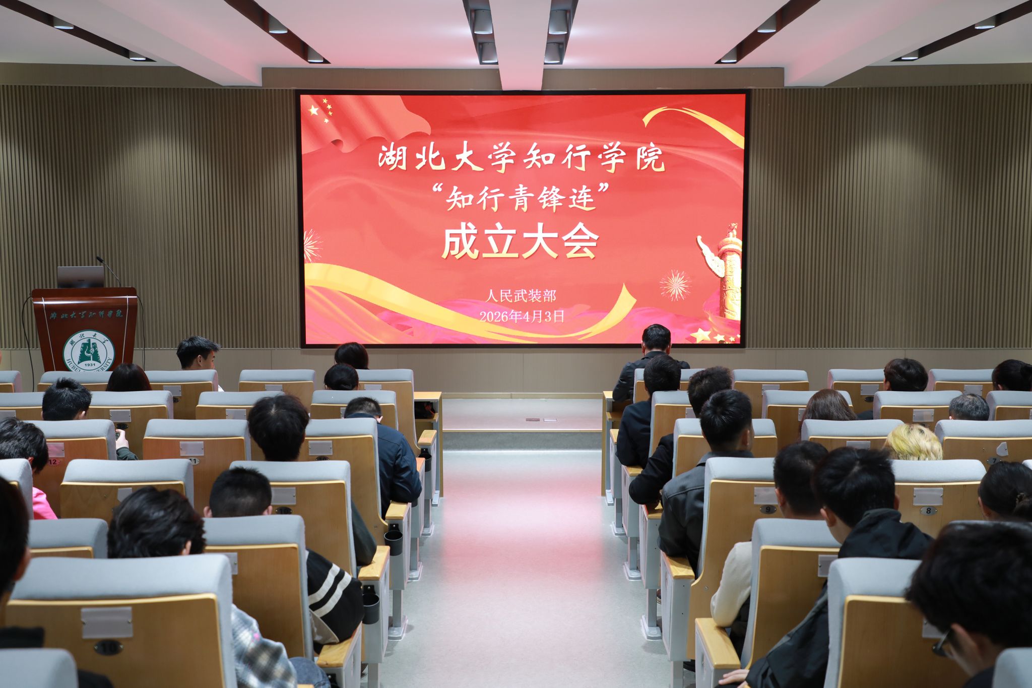 4月3日下午,湖北大学知行学院知远楼302报告厅内,一场特殊的成立大会举行。随着洪亮的宣誓,我校59名退役大学生士兵及应征入伍积极分子组成的“知行青锋连”正式成立。